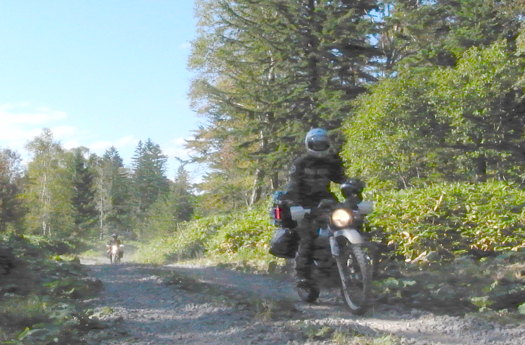 マジで温根別ダムへの道は危険の薫りがマジしたよ! [拡大画像] 道道と言う名のダートを快調に走行してたらビックリ 間違って進入して来た普通の大型トラックロング車体 しかも道幅いっぱいのヤツだぁ〜逃げ場がないぜぇ〜 もう草むらに非難するしか考えられない状況でしたねその後は草ボウボウの湖底へ続く獣道、ぬかるんでて 途中で危険回避、、、私のは大型オフで半泣きでした 道路が山型になってて秘技スタンドターンを試みるも 土にめり込んで亀の子状態、タイヤをパワースライド なんとか自力で脱出出来ましたが危ない処でしたね♪・・・峠幾三は余裕で風景を眺めていましたけれど?二輪熊は冷汗タラリさ
