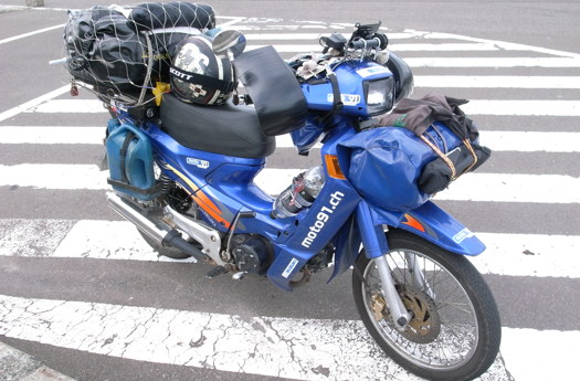 美幌峠で昼寝してたら面白いバイクがやって来たぁ〜 福岡市のナンバーを付けてるので博多弁で声を掛けた 博多から来たとやぁ?なんばしよるとぉ?寒かねぇ〜[Sorry I cant speak Japanese...] ahaha It's OK no mind!!! って事で英語でいろいろ訊いてみたら中国→韓国→日本だって スイス人ライダーだったよ、そういえば和琴で一昨日見た様なチャリダーとタンデムで外国人扱いされたんだけれど♪ (爆))) 若造の管理人が面倒だったので停車せず素通りしたんだよねぇ その時、彼に[Have a goodday!]って声掛けてたから記憶有り