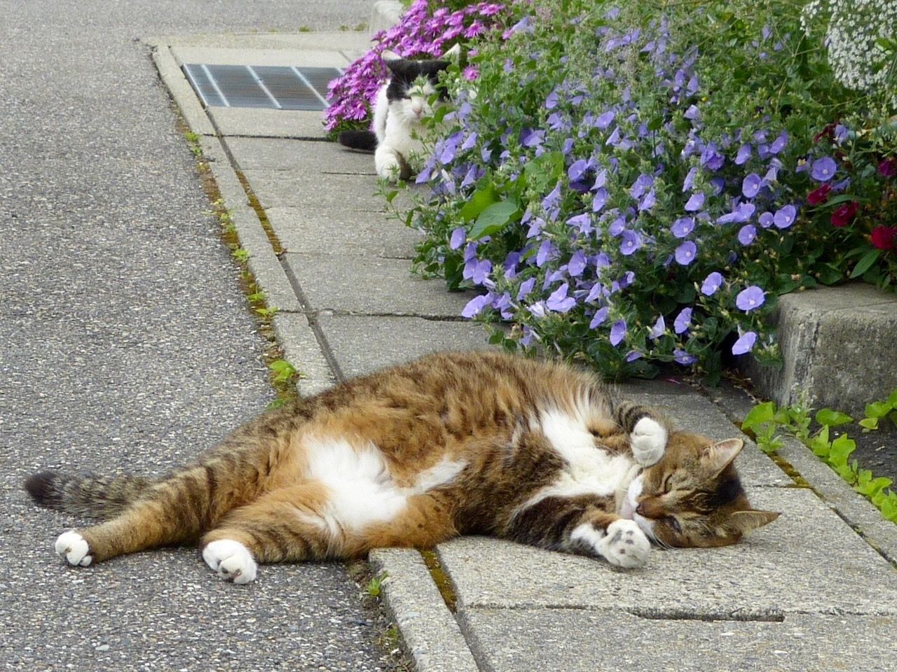 今日も散歩に出たらチビがどこからか現れて、白の後を付いて回ってます。