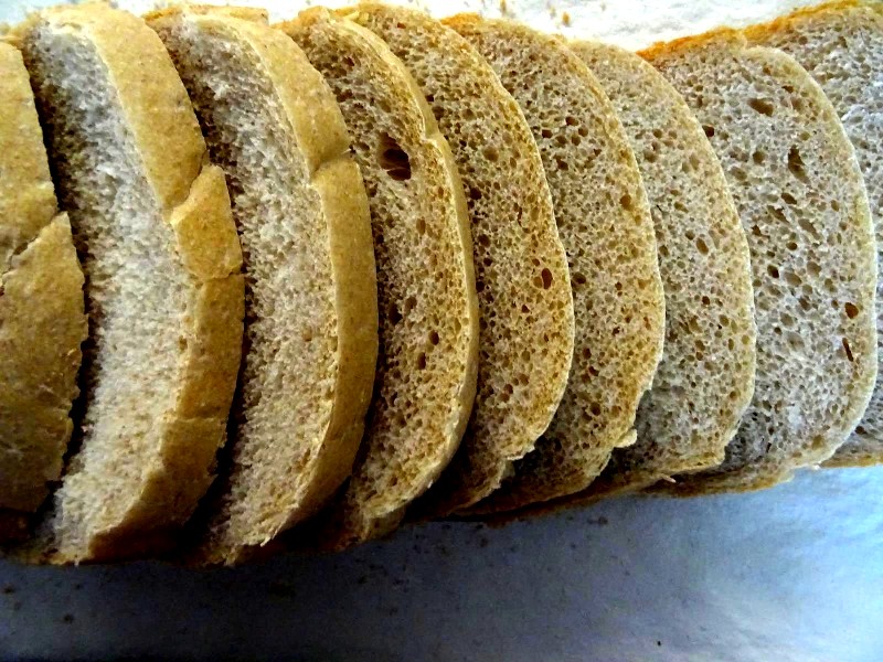 グラハムブレッドフラワー<強力粉タイプ> 1kg 全粒粉_ T-fal ブーランジェリー レシピブック p22 今回は レシピブックのコピー フレンチ食パン です。やはり バターをつかいたくないので、オリーブオイル3g強力粉は前回と同じ 春よ恋100% 300g 残り50g を 上記の全粒粉にしました。変更点は これぐらいで、私にすれば、結構忠実です。 バターにするともっと 美味しいはず。でも、家庭用なので、健康上、出来るだけ バターは避けてます。春よ恋 100% は 小麦の風味があって、とてもよい粉だと おもいます。スーパーキングも 何度か試してますが、とても綺麗によく膨らみますし、美味しいのですが、私には、小麦の良さが分かりませんでした。それに、何か混じっているような? 気がしてます。それに比べて、春よ恋100%は しっかり 小麦の風味が感じられ 素朴さを味わえます。 今回の フレンチ食パンは 前回のソフト食パン と大差ないですが、小麦粉の分量が増えて どっしり、ヨーロッパ風ではあります。でも、何かが違う(笑)。ヨーロッパでは日本のような 真っ白い食パン に出逢えません。全粒粉 か ライ麦粉 を混ぜているのだと思うのですが、健康上は 玄米と同じで、漂白されてないほうが 良いに決まっている。でも、白い、ふわふわの 食パンに馴れた 日本人には 好みが分かれるでしょうね。昨今の フランスでは日本の食パン が 人気 らしいです(笑)。日本製のベーカリーが売れているとか?イギリスで食した サンドイッチ用の食パンには まだまだ 程遠いですが、これは これで 美味しい し、冷凍しておいて、とても 便利。 ハードなので、カットしやすいし。当然といえば当然ですが、パンは小麦粉次第 ですね。 お米もそうですが。