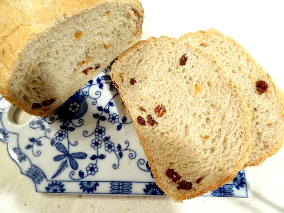 T-fal 君 にお願いして、昔、夢中でパン教室通い していた頃の レシピで食パン を 焼いてもらおう、と思い立ちました うちの いのししくん を 感動させた なつかしい食パンです 自宅でも、友宅でも、 はまっていた頃がありました。まさに、日本人好みの お手製食パンですが、食パンの型を洗うのが 面倒で 本職が忙しく、いつのまにか 使わなくなってしまいました。押入れに、パン器具が わんさと 入っているのですが、今となれば、それを出すのも面倒なので、大好きなT-fal 君に お願いしようと 思った次第。 当時、粉は スーパーキング を 使っておりました。 この粉は 本当に素晴らしく膨らむし、肌理が細かく、舞妓さんのように 肌が白く、美しいのですが、随分、歳を経て今は、Sキングに 感動しなくなったので、 春よ恋 と デュエリオ を同量にして、全粒粉を50g で やってみることに。 それに、大好きな オレンジピールとレーズンを入れました。 実は T-fal 君は フランス生まれなので、フレンチ風しか作れない! 皮が硬い!と不評で、一時、大丈夫?と心配するくらいの 値 で 売られていたことがあって丁度、私が ベーカリーを探していて フランスパンが焼ける!安い! と飛びついて即 手に入れましたから とても お安く 購入できました。ラッキー!でも、その頃には、T-fal君にがっかりしながらも 賢明にアレンジを考えた人がいたんです。同時に、一万円以上も アップしてしまいましたはい! つまり 私が言いたいのは、T-fal 君 とても 賢い子ですよ ふわふわ のパンも作れます! それが 今日のパンです。 いのししくんも、わたしも フレンチ風が好きでふわふわ は ちと たよりない のですが・・・ 昔、私の夫である いのしし君を 感動させた 食パンですT-fal 君を 購入したけど 暴走するから、嫌い! と お蔵入りの 人も おられると思います。 もう一度、出してあげて くださいませ。他の ベーカリーでも そうですが、 「美味しく焼けへんから もう いらん!」と どこかへ追いやってる方も もう一度 もう一度、使ってあげてください。 要は 小麦粉の質 そして、砂糖の分量 が KEY です。 Sキング だと ふわふわ 真っ白のパン になりますし、今、私が使っている 春よ恋100% も、春よ恋ブレンド も うまく焼けます。殆ど、フレンチスタイル も 日本バージョンも 材料が同じ。何が違うかと いうと砂糖 なんですね。 砂糖を多く入れるほど、 ふわふわ になります。 そして、小麦粉を 変えてみてください。T-fal君は 喜んで働いてくれます