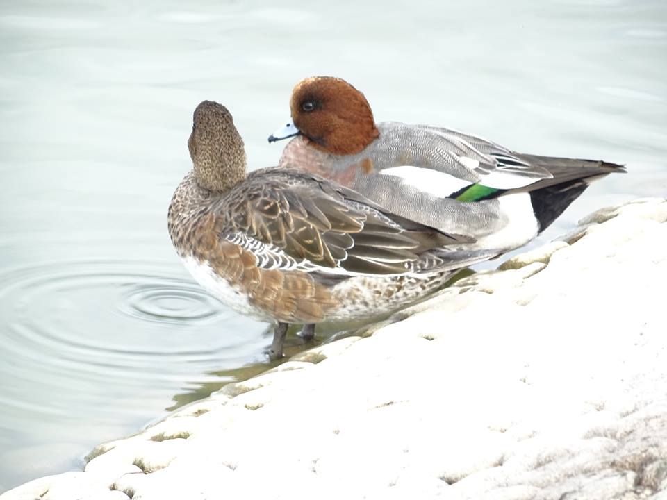 ヒドリガモ だそうです。 なにを話してるのでしょうね。 高鷲丸山古墳 ヒドリガモ - Wikipedia