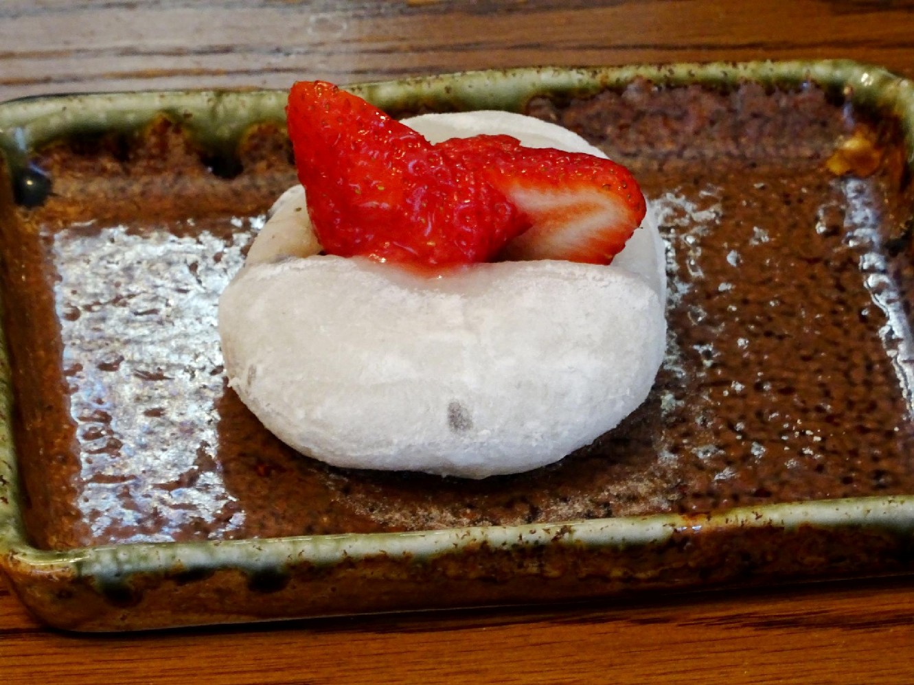 自慢じゃないけど いのしし君は 大福が好きだ。昨日も 冷蔵庫に 鎮座している。あの 5個入り 袋に入った 子達。私なら、月に一度でよいから、 老舗の 苺大福を 買うとおもう。歳とともに 大福中毒に なっている!? ありがたい事に 今朝は 結構立派な 苺の収穫。小さいのに混じって、一個だけなんだけどいのしし君は 笑っているだけで 食べないので 都合よい。だから、 今日の 昼食後の 私のデザート は 苺大福。 写真を 意識したので 食べるのに 苦労するのですが、半分に カットして、それぞれの 苺を ナイフで サンドして 今日も 美味しく頂きました苺に、メープルシロップを 少し 振り掛けてます。ご馳走様