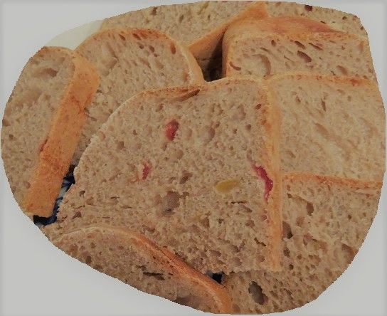 my フルーツブレッドにも、慣れてきたのでやっと本来の一斤分に挑戦です。もう、殆ど失敗はないでしょうアリソンのクランベリー、アリソンの干ぶどう、実家の無農薬 キウイ、柚子で作ったグラッセりんごのグラッセ。88g 丁度良い分量のはず。どっしり 重いです。 カットするときが、楽しいんですよねそれにしても ドライフルーツばかり 懲りずによく焼いたものです仕込み水 220 オリーブオイル3 塩7 楽農園カタオカ春ゆたかストレート 350 スキムミルク3 風と光3クラフトチーズ3枚 焼成48分にしました。そろそろ キウイも柚子も底をついてきました