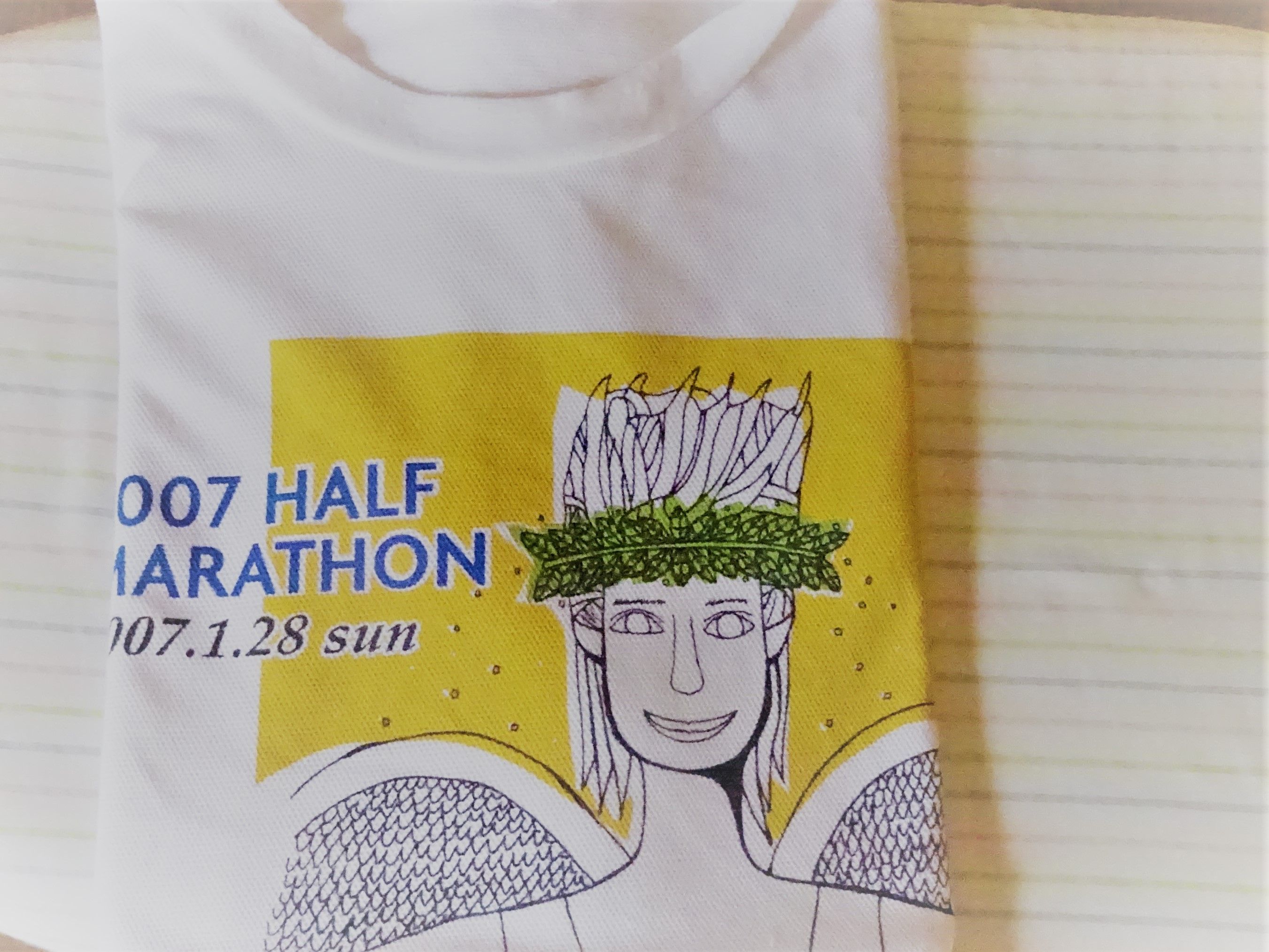 もう一度 丁寧に 洗いなおして・・・敗れてないし、、、綺麗やん。ボロにはでけへんで。これも 母が着るべしか・・・いなや?2007年 ハーフマラソンの記念品のようです。可愛い