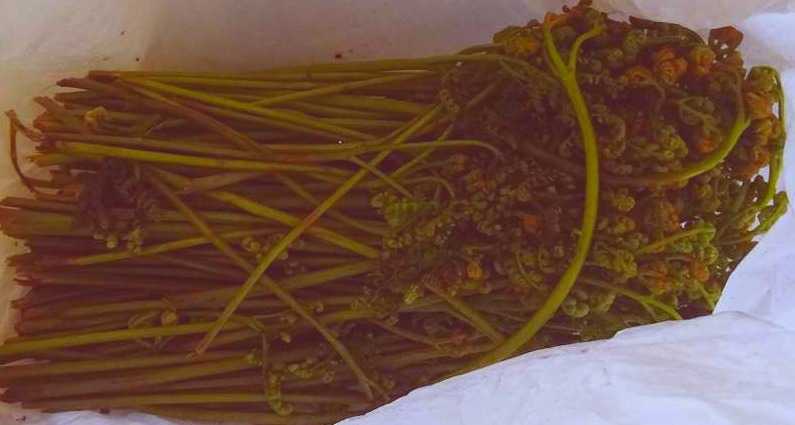 今日の 🐗のお土産 なんと ワラビ そう、また、手間のかかるやつ 6月でも 新芽が出るんですね。 夕食後、早速 重曹で漬けておきました。 80℃から 60℃ 水の量の一%の重曹 この分量だと、小さじ1位かな? 少ない目が良いらしいです。 藁灰が理想的なんですけどね。 重曹でも簡単にできるとか? 明日は ビビンバ? 山菜蕎麦?(まだタケノコあるんだわ) 山菜ごはんでも よいかな。 ま、気分次第で。 水を 毎日取り換えれば 冷蔵庫で 一週間、それ以上は 水切りして 冷凍庫。 私は 黙々と リビングのカーテン洗い、窓際の掃除、 外は 暑そうなので、諦めがつきますでも、時間がかかる。 それに、あの日から 高い所に登れない。