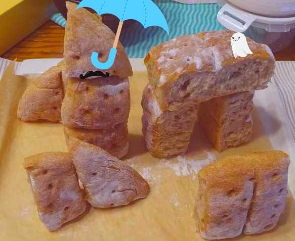蒸し暑い日ですね。29℃、こまめに水分は マストです。3回目 乾パンを焼きました これ、食べやすくて、適度に歯ごたえがあって好き。 もう少し、形が良くならないかしら? 一応 成形したんですけど、思うようにならない。 全粒粉30% 焼成180℃ 32分 程よい硬さだと思います。 今日の乾パンは 90点、自己評価ですけどね 爺も好きそうです🐗 なんせ、食べやすい