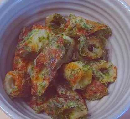 竹輪の磯部揚げ エアーフライヤーで作ってみました。 しかし 薄力粉を買ってないことに気づき 生憎 米粉も切らしていたので 仕方なく、強力粉と 片栗粉を使いました。 エアーフライヤーで 上手に出来ることは分かったのですが、 なんせ 強力粉を使ったので 重い 粘りが出て 扱い難い。 でも、美味しくいただきました。 竹輪一袋、あおさ、小麦粉、片栗粉、マヨネーズ、オイル、酒