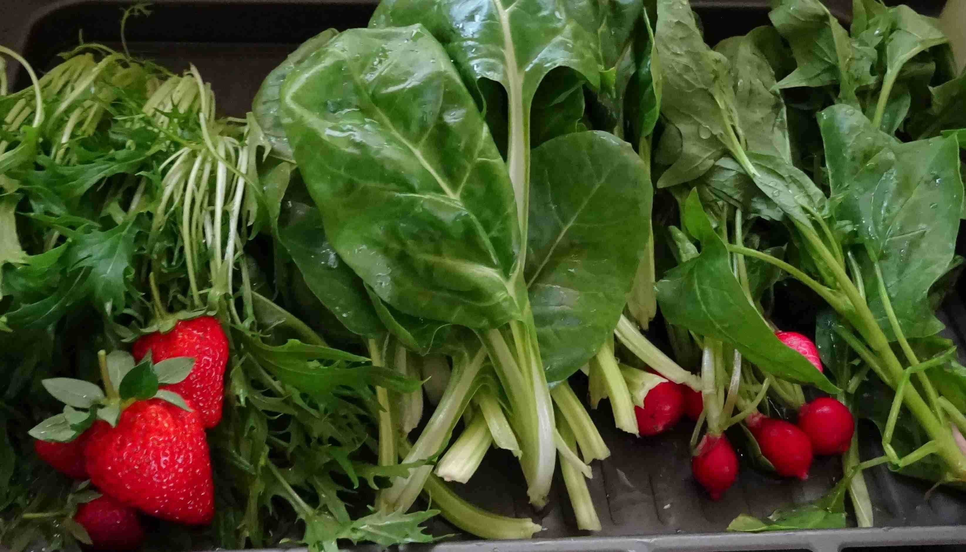 サラダ水菜、苺、ウマイナ、20日大根、ホウレンソウ
