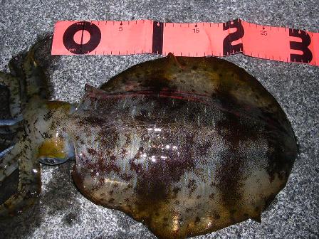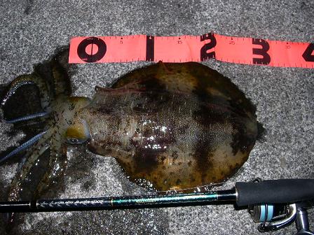 昨日皆さんのコメントに感謝です。とってもうれしいでーーす。午前零時に出発して、尾鷲に2時半到着早速エギング開始・・・何、夜行虫だらけケンサキを1匹移動・・・ここも・・・隣の漁港へ・・・なーんも移動移動 もとに戻り、大突堤へ。ヤエンの竿がぎっしり師匠が釣った、スーパー集中力開始新しいエギにチェンジしてボトムをベタベタしょう。ボトムをとって軽く1回シャクッテ、テンションホールグイ~~ン、ビシッと合わせドラグがジイ~~~~~~、ジィ~~~~~手前まで寄せて師匠にギャフ入れてもらいました。師匠ありがとうねぇーカラマプロト832Mとイグジスト2506です。とっても軽くエースになりそうです。渡船の時間になり、筏に出発すぐエギでシャクルもなーんも???師匠のヤエン仕掛けがジィ~~~~~。アジかぁー??? 師匠ヤエン連発ヤエン始めての僕は勉強中で、僕もセットしました。睡魔が、ヤエンのジィ~~~が鳴るたびに目が覚める。自宅の目覚まし、ジィ~~~にしょう何? アジが足りない???渡船に電話すると隣町に売っているので買ってきな。何? ここは筏ですぞ 送迎したるよ師匠のエギング号で隣町まで僕が買いに走ります。30匹アジ追加です。エギはまったく当たりなしです。アジをセットした僕の竿がジィ~~~~ちょっと魔ってヤエン投入・・・ロープに引っかかりアオリもヤエンもパー師匠ゴメンまー初体験なので許してね。数時間後ジィ~~~、おっ今度こそ。ヤエン投入、グィ~~~~ンちょっと小ぶりなアオリちゃんでした。昼を過ぎるとアジもエギもなーーーんもです。カサゴ&お昼ねタイムです。ハイ、カサゴくんもゲットです。風も強くなり午後5時終了です。結局全員筏でアオリ釣れたのは全てアジの泳がせでした。エギの当たり(反応)ゼロです。読んでいただき有り難うございました。エギングブログ村
