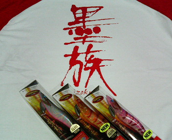 墨族のエギを買った時、くじでTシャツが当たりました。まだこのエギでアオリイカを釣ってませんが、いい動きをしてくれるので、キロアップのイカに期待です。当然アワビシールをつけてラメ塗って完璧です。今日も忙しく働いたので今日はこのへんでね。エギングブログ村
