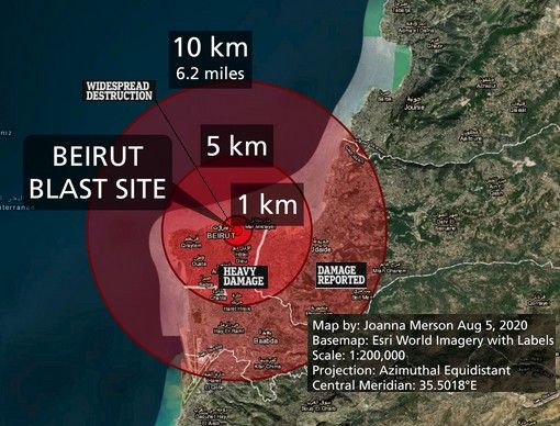 ベイルートの爆破被害は、広範囲に及んでいる、