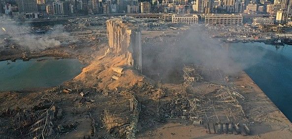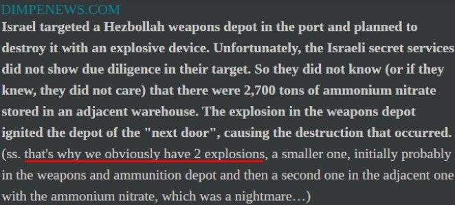 (2回の爆発の原因:初回はヒズボラ爆撃、2回目は隣の硝酸アンモニウム倉庫の爆発、)