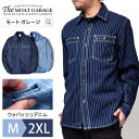 【お一人様2枚限り】 インディゴ デニムシャツ 長袖 メンズ ワバッシュ ワークシャツストライプ ウォバッシュ アメカジ