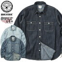 【10%OFF対象品】HOUSTON ヒューストン 40511 USA COTTON デニム ワークシャツ / アメリカ製コットン デニムシャツ DENIM アメカジ 定番 メンズ