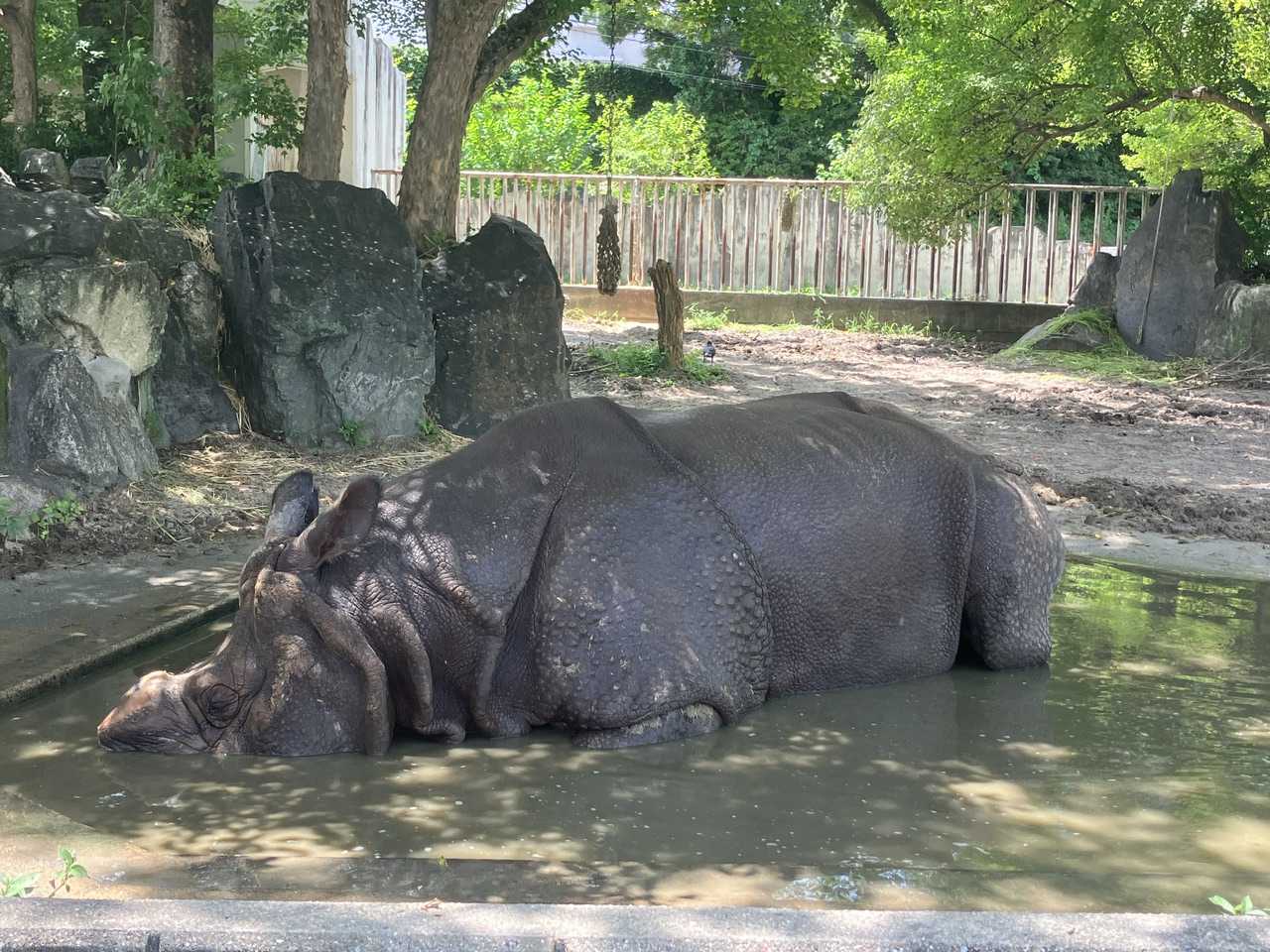 お昼寝ブンちゃんこんにちはあっ園内放送にびっくりしたのかな…?寝たおやすみまたね〜ブンちゃんのところは木陰が気持ち良くって好き暑い日も平気正門から入るとすぐインドサイに会えるって結構すごいよね!?