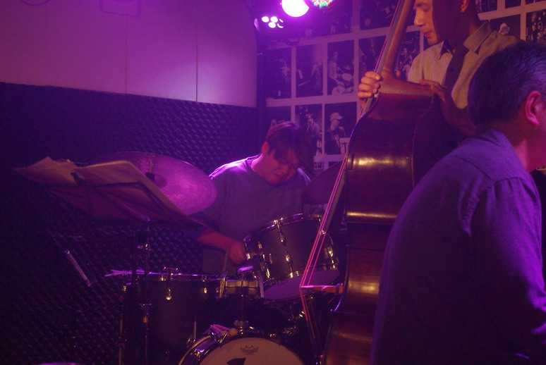 ピアノとベースのソロを聴いては陽太郎さんは只々ボトムをしっかりと支えるドラミングを徹してる