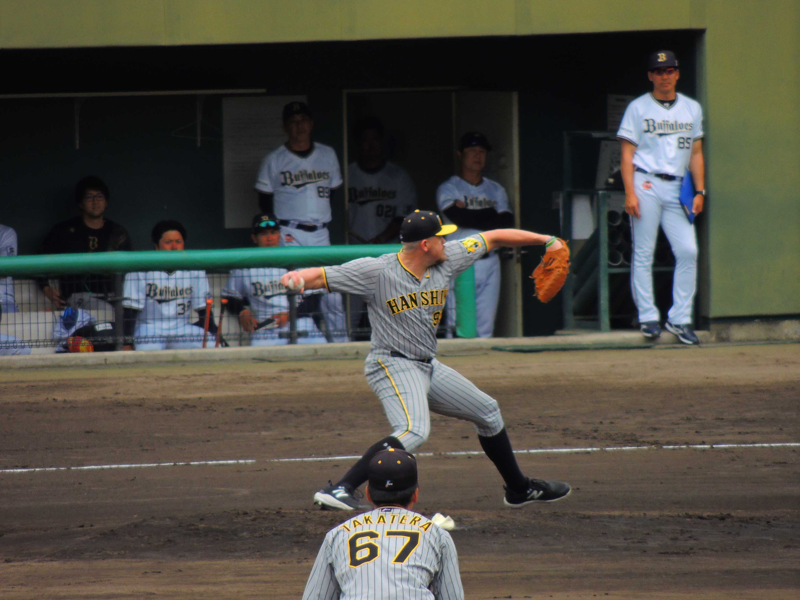 監督はこの日の鳴尾浜でのウエスタン・リーグのオリックス戦で打った2本の引っ張った安打を映像で確認し 「えぐい当たりしとった」 と評価を上げました