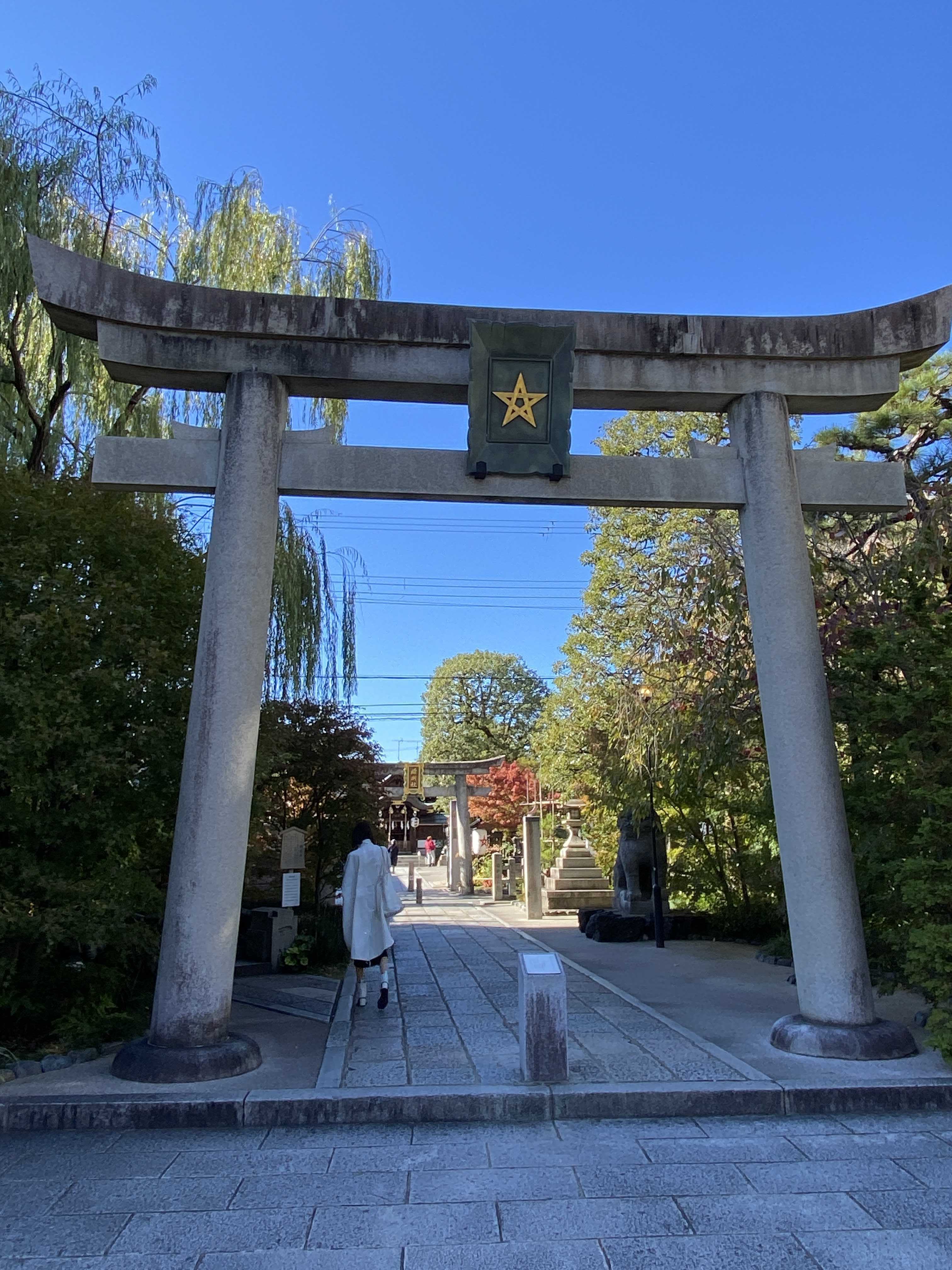 堀川通に面した「一の鳥居」をくぐって進んでいくと「二の鳥居」があって 入口の「五芒星」が嵌められた門から境内に入ります