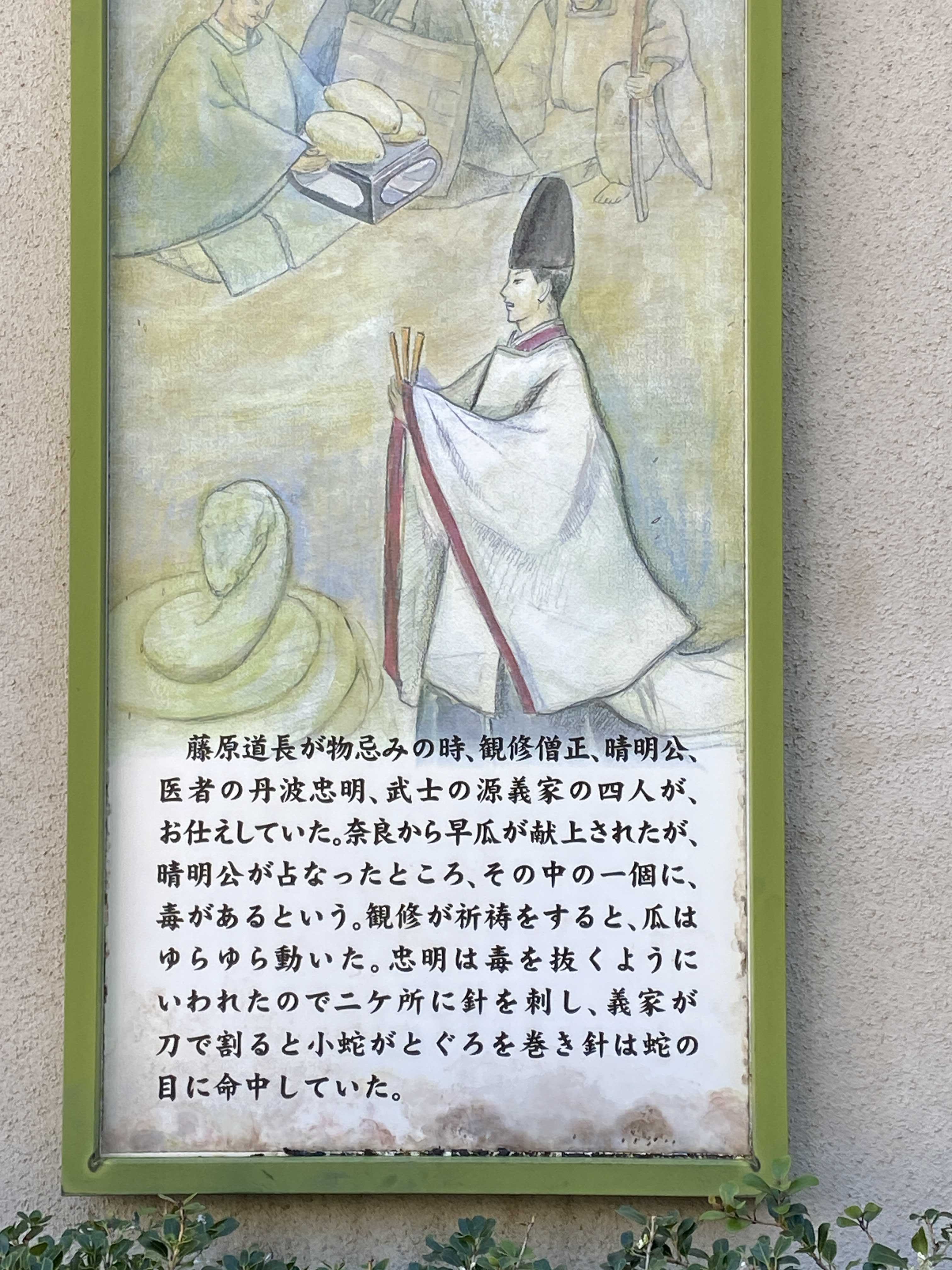 境内を取り巻く塀には 晴明公の逸話や怪しげな伝説などがたくさんのパネルで紹介されてます これはその一部ね