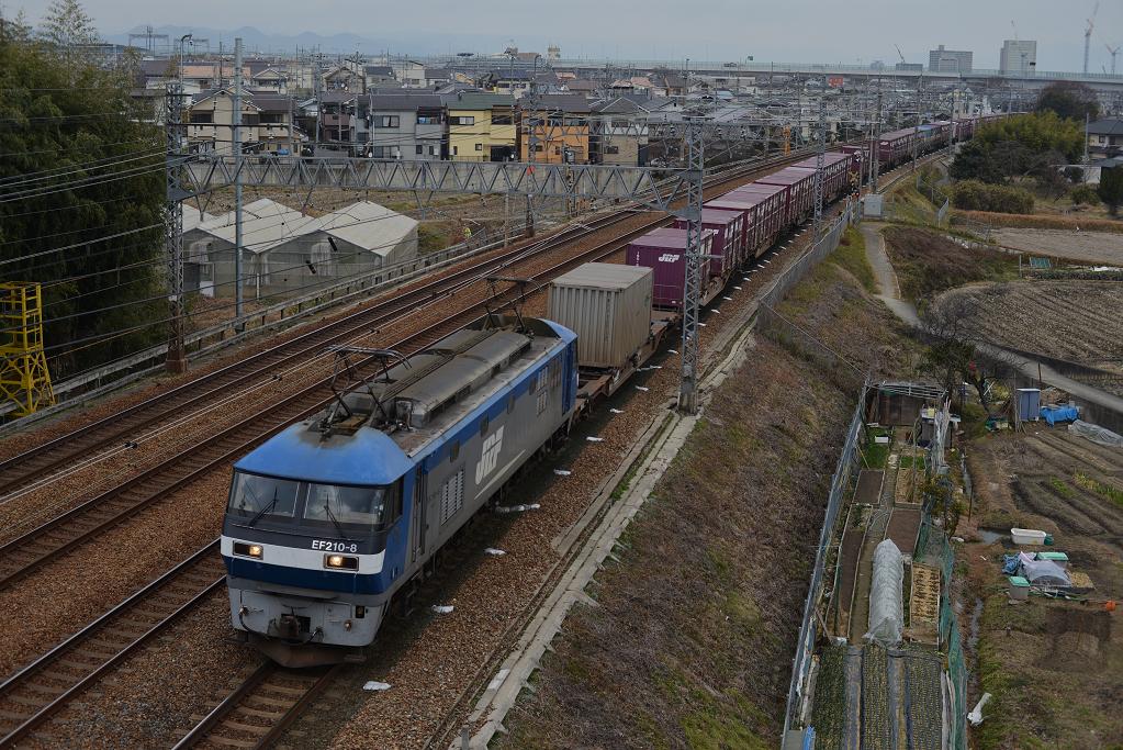 EF210-8 5085レ 2014.01.23 山崎ー長岡京 名神クロス