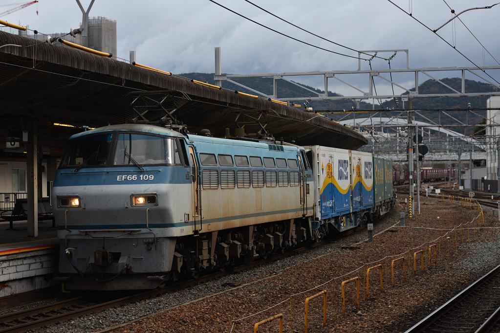 EF66-109 1055レ 2014.01.26 京都駅仕事前のちょい鉄は曇りなので名神クロスは中止。駅鉄でした。8056レ、4083レ、これらが日ウヤなので山科駅では意味がないので京都駅でのちょい鉄です。