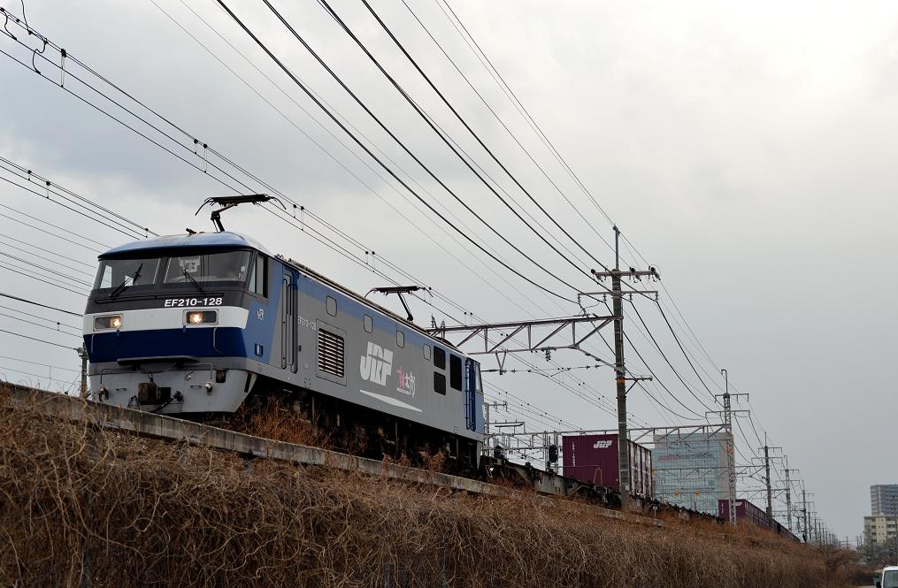 EF210-128 5084レ 2014.01.21 向日町ー長岡京5084レから4071レまでちょい鉄しました。ムコソで凸があすかを使って連結訓練してました。あすか編成を切り離ししたりしてましたが117系に隠れていて撮影出来ません。