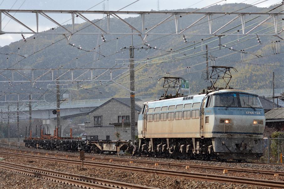 EF66-124 遅1182レ 2014.01.19 山崎ー長岡京 調子踏切1182レに何が入っているかでその後の予定を決めるので確認しに行きました。