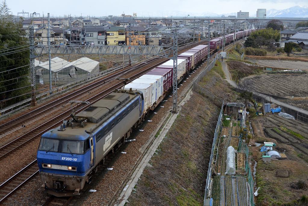 EF200-10 遅1071レ 2014.01.19 山崎ー長岡京 名神クロス小雪がちらついて寒かった・・・ これで昼メシに出かけました。