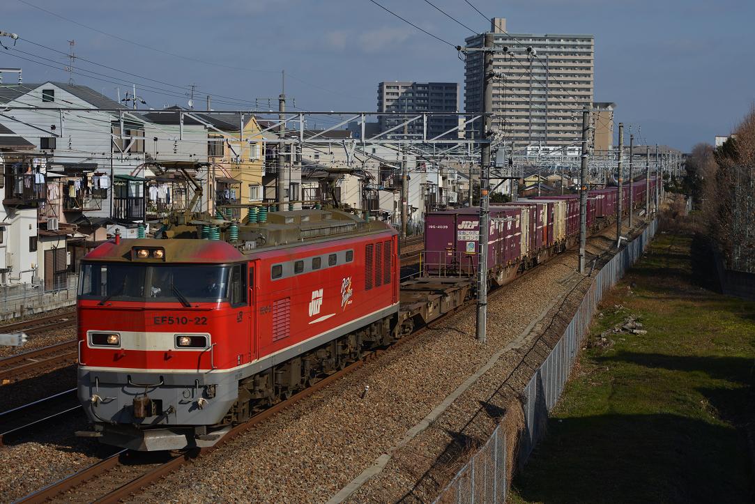 EF510-22 遅3096レ 2014.01.29 山崎ー長岡京 長岡三中1055レの上俯瞰の後は定番の位置で撮影しました。これにて撤収です。