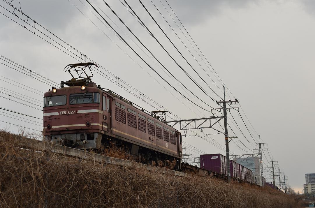 EF81-627 3095レ 2014.01.21 向日町ー長岡京EF81-729 4071レ 2014.01.21 向日町ー長岡京もう少し明るい曇りなら・・・