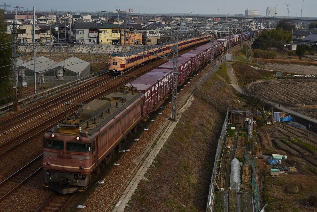 EF510-14 遅4058レ 2014.01.19 山崎ー長岡京 名神クロス3092レスジで大きく遅れてきました。EF510-21 遅3096レ 2014.01.19 山崎ー長岡京 名神クロス11:08通過でした。辛抱強く待ち続けました。この後に1071レがEF200でしたのでさらに粘りました。