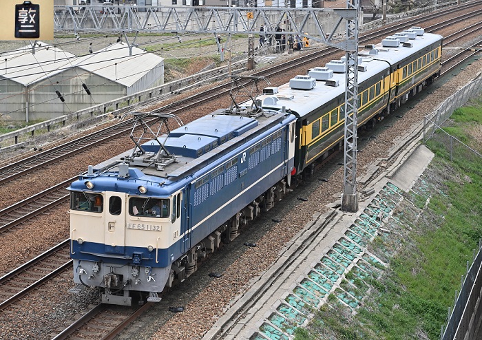 EF65-1132 回9971レ 大サロ・鉄博配給 2025.03.24(月) 山崎ー長岡京 名神クロス上 Z9 AFS24-120mm/f4下 D500 ウルトロン40mm/f2曇ると予測して此処でやりました、予測どおりに曇って良かったです。