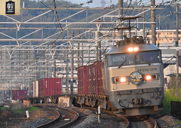 EF510-16 4071レ 2025.03.28(金)復興の側面ステッカーを目立つように撮影するのは難しいです。このように通常撮影ではステッカーは判らないです。