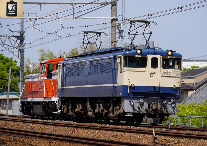 EF65-1132 DE10-1028 配9977レ 2025.05.05(月・祝) 長岡京ー山崎 佃踏切α7C 70-200mm/f4Ⅱゴールデンウイークでネタはこれぐらいでしたので・・