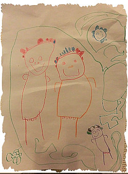 こんにちは。今朝の ごちそうさん、号泣でした。いきなりですが、ドーン 画伯の描いた絵 ちょっと寄りまーす何かとツボが多くて・・・私の大好きな1枚です。ご想像はいろいろかもしれませんがこれ、ママとママのお友達の●●ちゃん ですって。これ、スカートなんですって。 画伯登場カンケンミニのフロストグリーンを値札付けたまま家の中でしょってます。ケロスケ、いえ、画伯にはちょっと小っちゃめでした。ちなみに、手に持ってるブツのことは「ミネコン」ふつうに「ミネコン取って」と言います上の絵に居る、UFOみたいなのに乗ってるのが妹のケロ子だそうです。私には ポニョ にしか見えません・・・けっこう、面白い絵が多いんです、ケロさん。くーっ(><)っと腹が立つことがあった時など、ケロスケの絵を見ると和むので、冷蔵庫に貼ってます^-^【きになる】 Veritecoeur 左 Loint's 15%OFF 20,527円●おてごろ品より 4,980円 送込1,999円 2,680円 送込7,140円TOPページ や公開ブックマーク→ 随時更新中です♪ご訪問のしるしに 応援クリックいただけると嬉しいです。いつもありがとうございます。