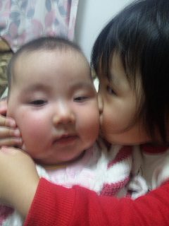 昨日は杏ちゃんの助産師訪問がありました。ホントなら助産師さんは来る予定なのですが…バタバタしている間に杏ちゃんは3か月半。。。3ヶ月すぎると担当は保健師さん。と言うことで市の保健師さんが来てくれました。内容的にはあまり変わらないのでいろいろお話出来て良かったです。まず身体測定。なぜか姫が測ってもらう気満々で、先に姫が。。身長は約92センチでした。体重は赤ちゃん用の体重計で姫はNG続いて杏ちゃん、身長は63.2センチ、体重は6545グラムでした。ちょうどそのころの姫の体重は7000グラムくらいだったので、意外にも杏ちゃんの方が小さいんです。杏ちゃんは身長も体重も標準ど真ん中でした。いつもほったらかしでかわいそうな杏ちゃんですが、すくすくと育っております。あとは発育診断、育児相談など。。私もいろいろ話ができでためにもなってストレス解消にもなって良かったです。何か相談事があったらいつでも訪問に来てくれるそうなのでそういうところも頼って行こうと思います。 終了後はお買いもの、姫はやはり最近甘えるとこもあって出先はいつも私を困らせます。杏ちゃんの準備をしている横でティッシュを何枚も出したり、自分で履ける靴をなかなかはかなかったりととにかく私の気を引かせようとするんですよね~きっと仕方ない事なんでしょうが…私も余裕がないとイライラしてしまってその後は反省なんですよね。。杏ちゃんが風邪気味なので昨日はお買い物だけ。姫が退屈そうなのでスケッチブックを買って家でお絵かきです。自分のスケッチブックは自分で持つと言わんばかりに家までそのレジ袋を引きずって持って帰ってました。こんなかわいい一面もあるんですけどね~そこからはひたすらお絵かき。そしてお昼寝。杏ちゃんにチュー。ぶれたのでもう一回。角度を変えて…もうやだよ~と言う感じかな。。バンボに座らせたらご機嫌。姫はカメラを向けるとすぐに自分も入りたがります。 私も面白くなってパチパチととってしまいました。 うつ伏せの練習。ちょっと疲れました~杏ちゃん。そしてやっぱり写真に写りたい姫なのでした~
