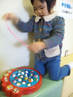 昨日は引越して初めて地元の児童センターに行ってきました。昨日は1歳児の教室があって姫より小さい子がたくさんいました。姫くらいの子は1人もいなく…姫が1番お姉ちゃんでした。最近、ちょっと物も取り合いなどがあるとお友達の事を押したりして危険でした。言って解るか不安でしたが…前に1回「お友達押したらいたいいたいだから押さないね。」と約束したことがあります。それを理解したのか…昨日は小さい子相手におもちゃを貸してあげたり歩み寄ってました。1歳くらいの時は暴走してどこへでも行ってたけど、最近はちょっと一目置いて周りの様子をみます。初めてのとこに行くと私の存在を確認しながら遊んだり先にいたお友達の中に入っていくのは躊躇するみたいです。大人になった証拠なのかな~それともあまり遊びに行かなくなっちゃったからかな~児童センターではひたすら私とおもちゃで遊んでました。 初めての魚釣りゲーム。面白かったのか…「もいかい、もいかい」と何度も繰り返し。私は杏ちゃん抱っこしてるからなかなか姫に着いて遊べずちょっとかわいそうでした。昨日は1歳児のクラスでしたが、今日は2歳児~のクラスだそうです。。徒歩25分とちょっと遠いし今日は寒いので残念ながら行けなそうですその代り、今日はバスで行ける児童センターに行こうか考え中です。昨日行ったとこを遠いけど、新しくてきれいで良いとこだったので予定表を見ながらまた行きたいと思います。ベビーカーで行ったので…私は疲れたけど、姫は逆に全然疲れてなかったので姫は家でも元気でした~今日は姫を疲れさせるように頑張ります。