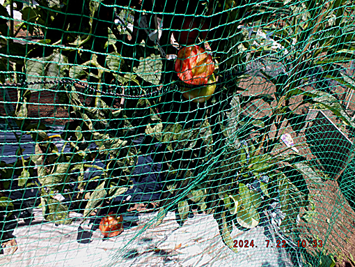 収穫期を迎え今年は豊作 なんて思っていたら 一週間前からこの状態 ネットを張ったのですが