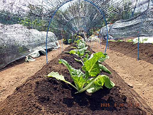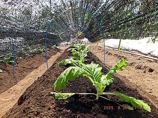 これも白菜の実験  今年は一気に秋が来て結球しなかったらと 花芯白菜を作ってみた