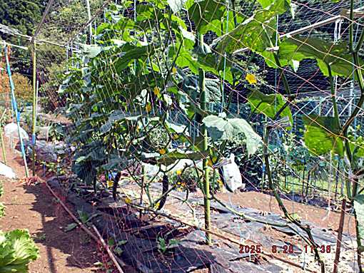 2回目の夏すずみ  このきゅうりも吊るし栽培をしています いつまで収穫できるか