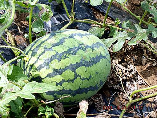小玉スイカ 最後の2個収穫です が  新しい弦が伸びてまた2個出来てきたので追肥してみる