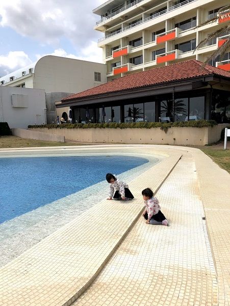 建物の前にはプールが2つ。