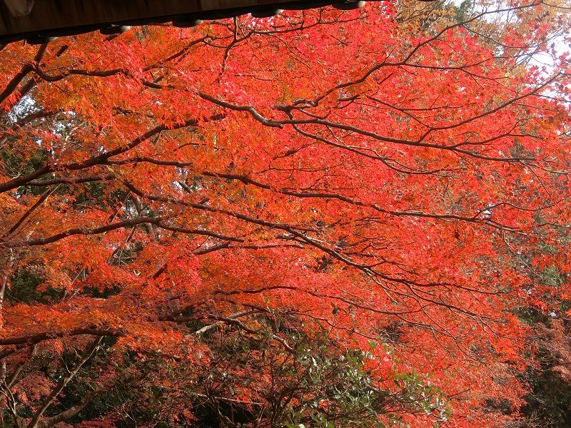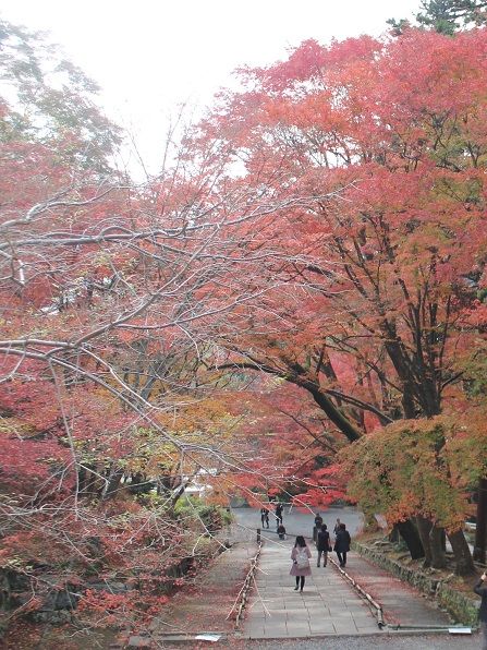 さて肝心の紅葉は、池以外にもそこら中にあふれていました。