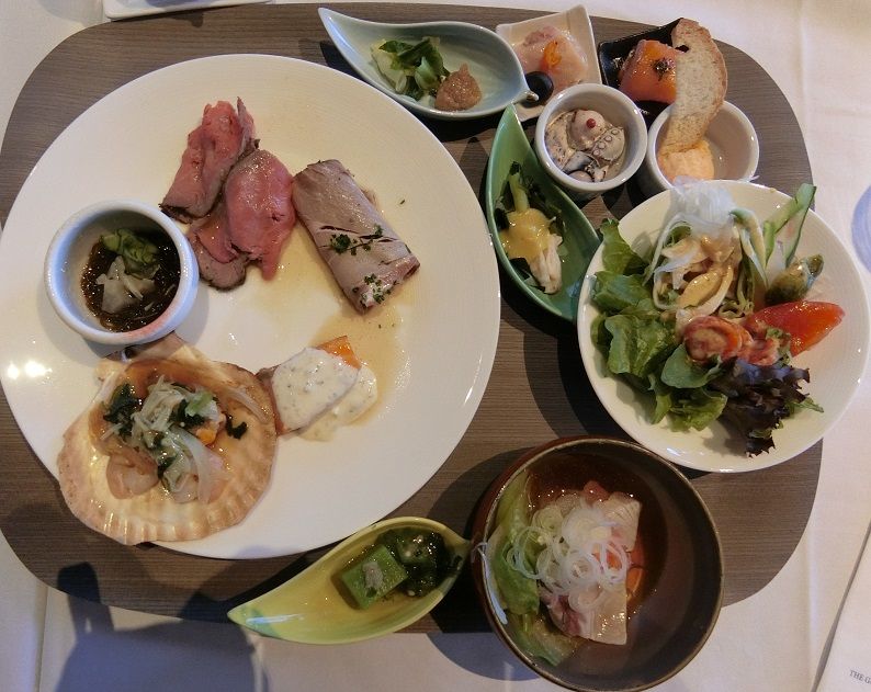 ローストビーフ、網焼き、鉄板焼き、天ぷらは目の前で調理してもらえました。