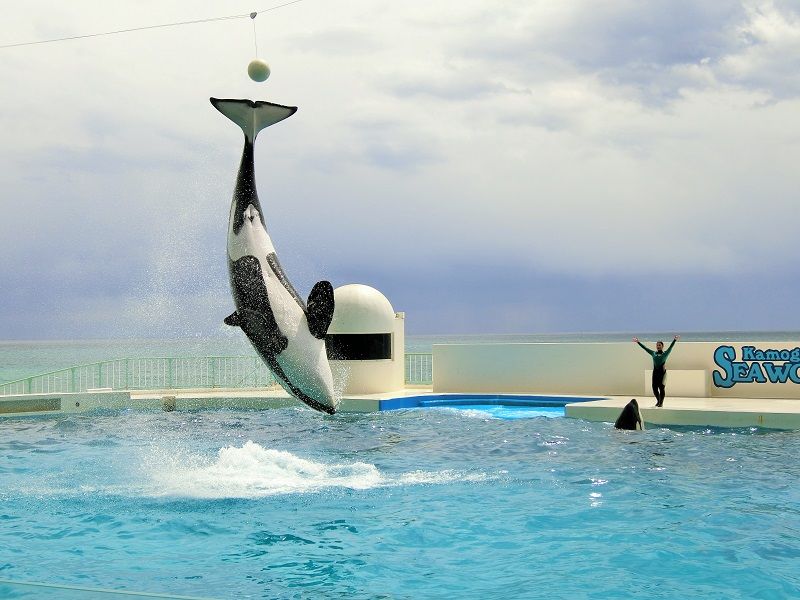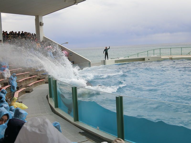 飼育員の指示でシャチは思いっきり水をかけてきます。