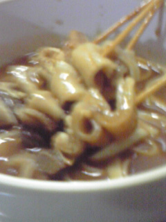 今日のきしめんは、筋肉をカレーで煮込んで、