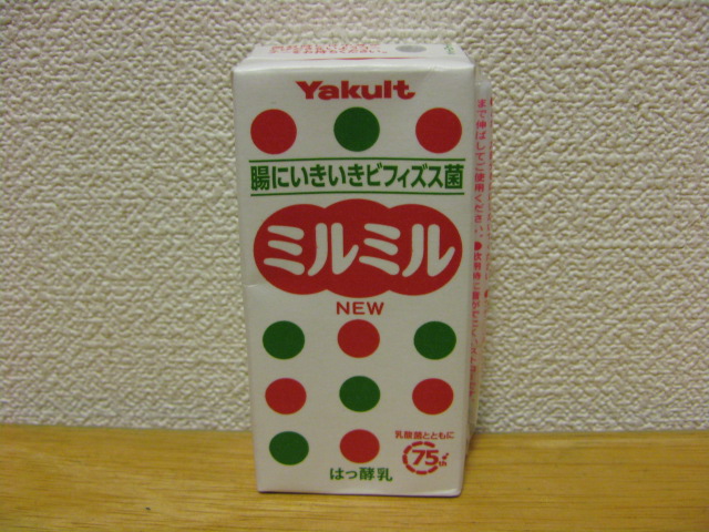 復活ですってよ奥さん(誰あるときを境に姿を見なかったミルミル懐かしいパッケージで帰ってきましたか味はあの頃のままなのでしょうか早速開封乳酸菌飲料のあの甘い香りがほんのりと一口そうそう、これこれwしかし、この味がにんじんジュースから来てるとは思わなかった相変わらず物足りないのよね、100mlってレベル:まぁコレ500mlあっても困ると思うが新発売ヤクルト ミルミル 100ml×3まだコレしかないか