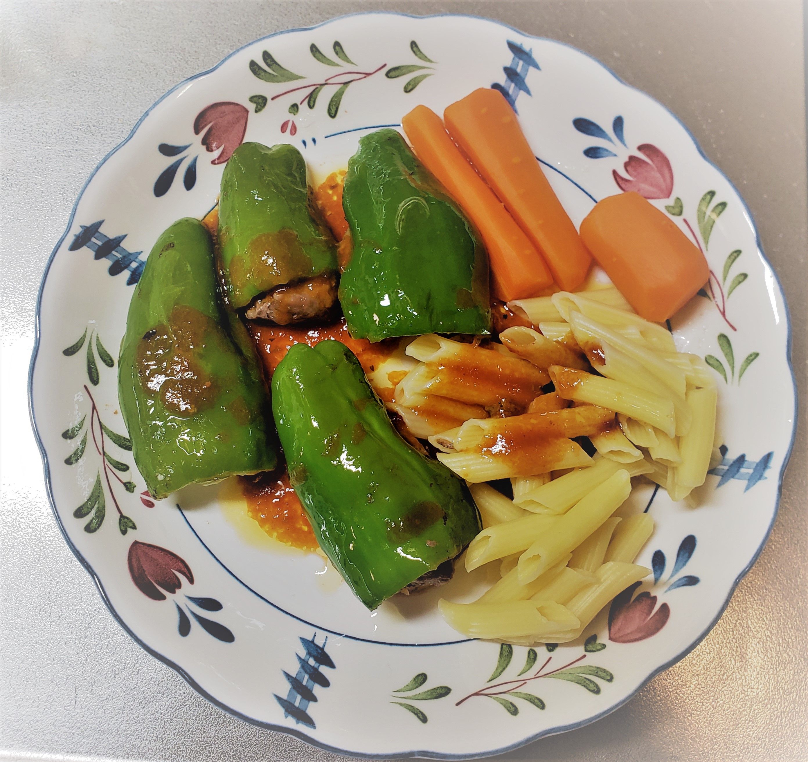 味が違う!味が違う!肉詰めピーマンの味が違う。見かけは食欲をそそるのだが・・・・ソースもいい味しているのだが、なぜ?今日のひき肉は合い挽き。牛ひき肉の肉詰めピーマンの味に慣れているので何かが違う感じでした。
