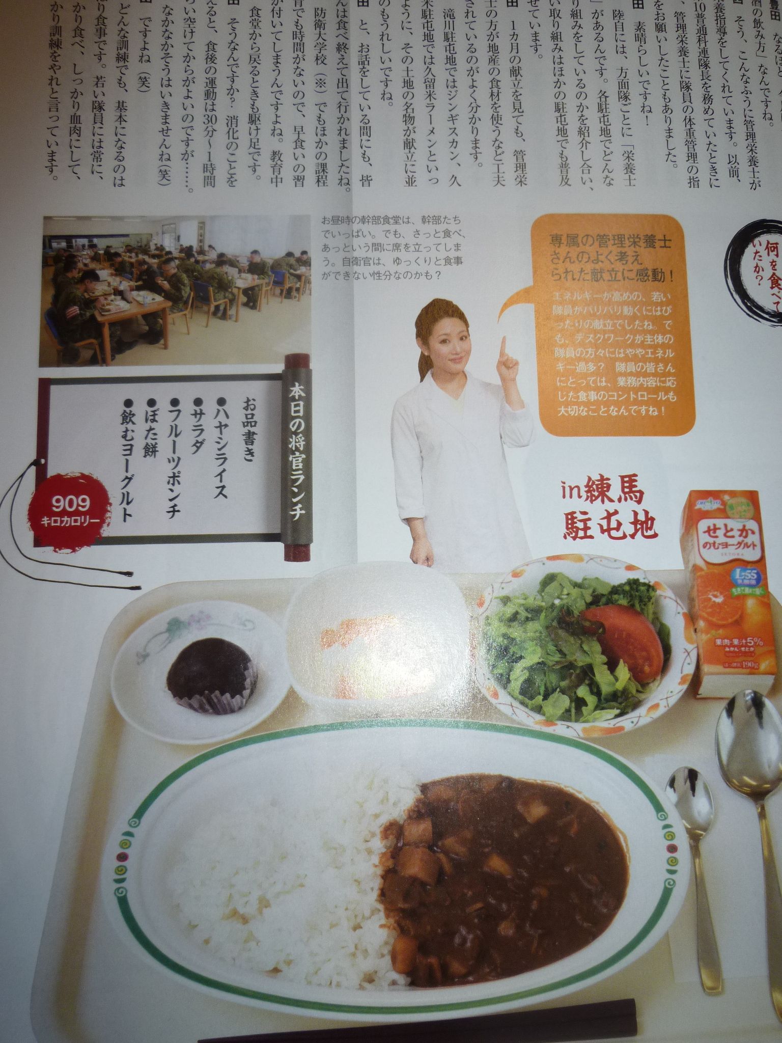 上記は、自衛隊の機関紙 「MAMOR」の記事です。練馬駐屯地の隊員が食べているランチの画像です。ハヤシライスが美味しそうです。